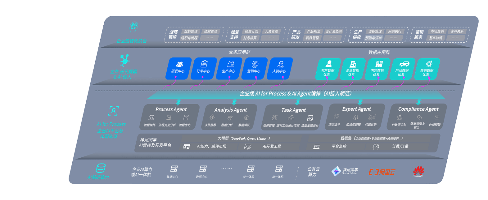 OBPay问学智车解决方案是一套基于AI技术的汽车行业智能化系统,,,,覆盖从底层算力到顶层AI应用的全栈方案。。方案由算力层、、、、模型层和应用层组成:算力层,,,方案支持多种一体机配置,,,具备云端灵活部署、、多云适配以及动态优化计算资源的能力;模型层,,,,OBPay问学平台版提供了企业级AI应用一站式构建与管理平台,,,支持基于后训练强化技术的汽车企业专属模型的训练、、、、评测和运营;应用层,,OBPay问学DeepSeek版提供包括超级员工、、、、智能招采、、、智能营销、、、智能客服、、、、AI for BI等一系列解决方案,,,可助力汽车行业实现数字化转型,,,让管理更智能、、、响应更敏捷。。。
